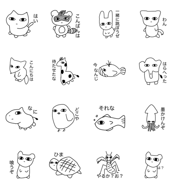 白ネコのあいうえお・・・ってるスタンプ