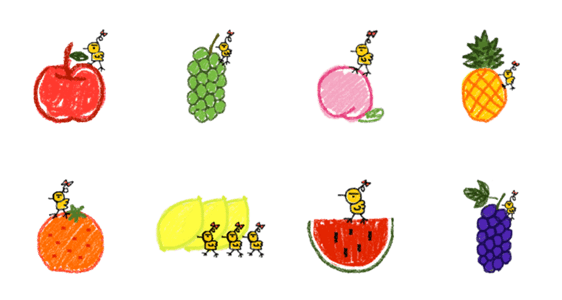 このブランドは、となりのピー子さん(オリジナルイラストの鳥さん)です。フルーツのスタンプです。たくさん使ってください!