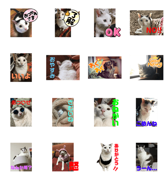 白ネコのあいうえお・・・ってるスタンプ
