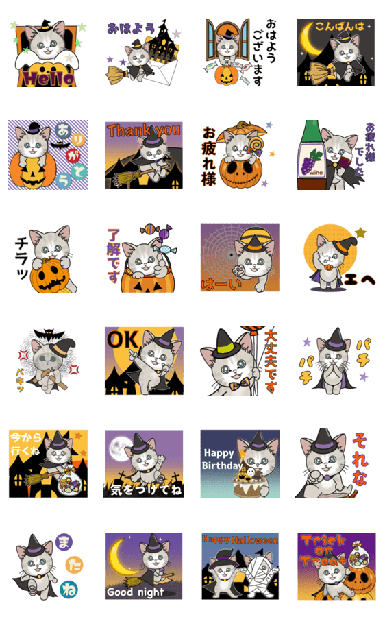 仔猫のぽんにゃんの毎日便利に使えるハロウィン verだよ! (日常/挨拶/敬語/カラフル/秋/トリックオアトリート/誕生日/おめでとう/大人/かわいい/友達/家族/ママ/ママ友)