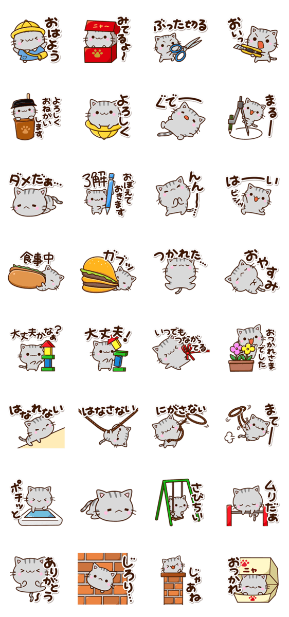 アメリカンショートヘアの『ちびアメ』。元気に楽しく返事ができる猫スタンプ。アメショやサバトラ等のねこ好きな方に。【かたこ】ママ友・家族・かわいいマンチカン