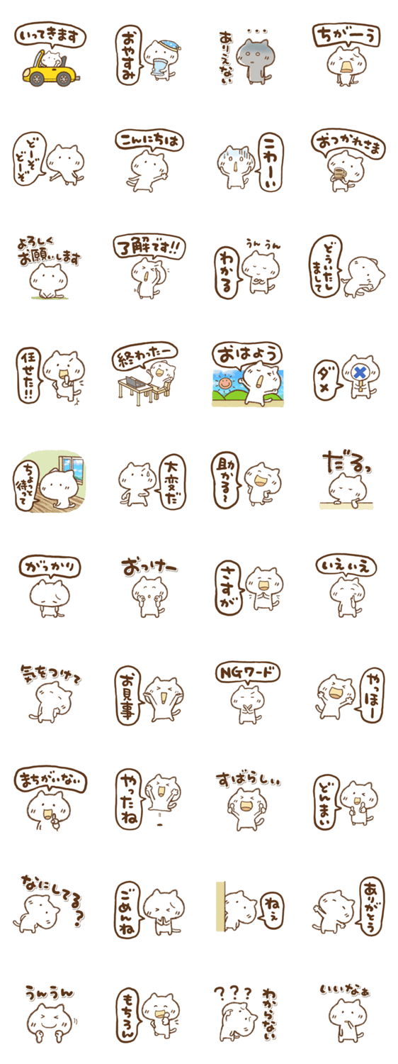 白ネコのあいうえお・・・ってるスタンプ