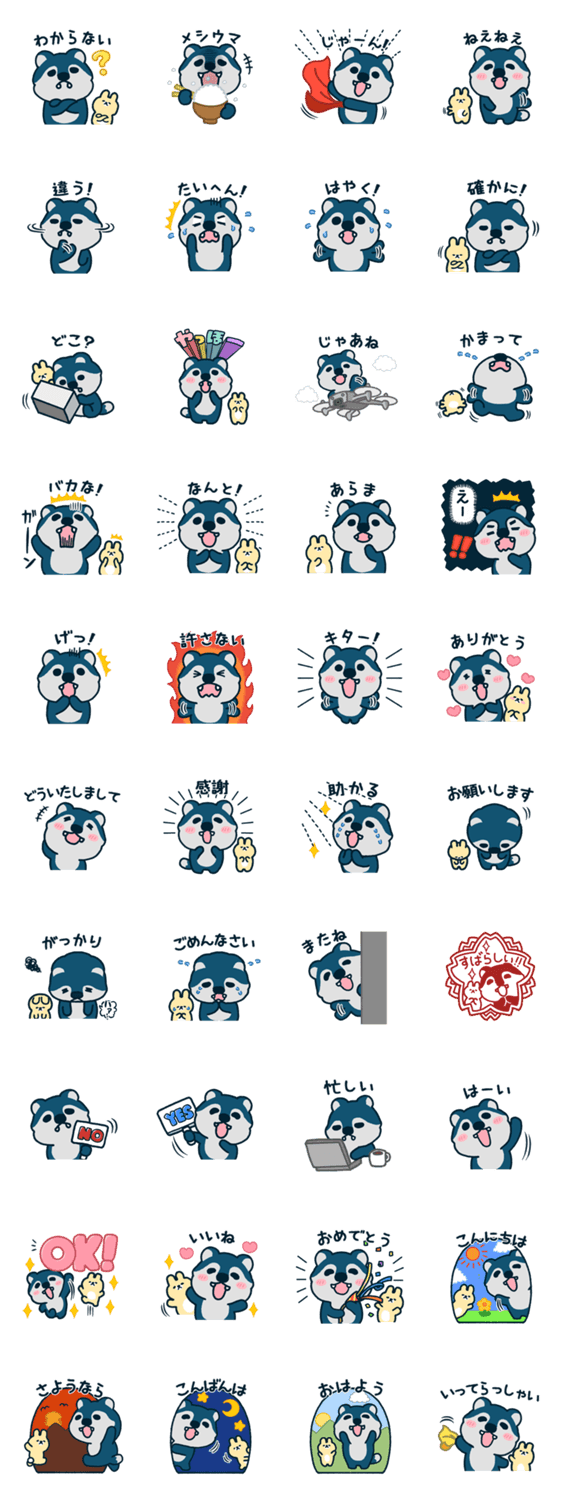 | スタンプ説明 | 下関市のドローンショップ「D-WOLF」のキャラクター「ウルフくん」のスタンプ第四弾が発売しました!可愛いウルフくんが日常会話を楽しく面白くサポートします♪ |
