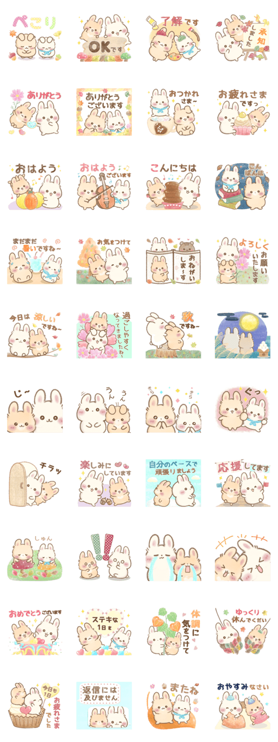 秋に使いやすいうさぎたちのスタンプです。毎日・挨拶・敬語・シンプル・ほんわか癒し・カワイイ・ラブリー・季節