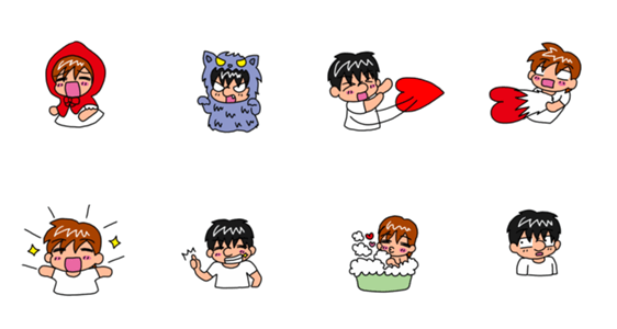 仲良し男の子とおじさんスタンプ第二弾 彼氏彼女にいっぱい押しまくって ひかれちゃいましょう 使い方は あなたの思考の数だけ インフィニティよ