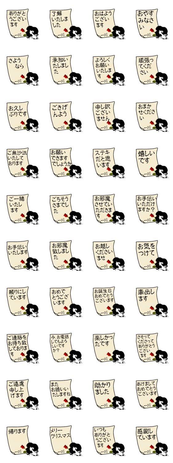 敬語スタンプ 承知いたしました おまかせください おめでとうございます 感謝しています ごきげんよう 帰ります ご無沙汰いたしております ミステリアスなスタンプ
