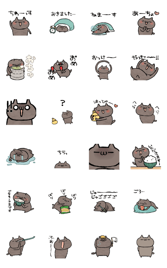 「ねこのくろ」の動くスタンプ第4弾の登場です!以前の「雑」スタンプの筆で描いたようなデザイン!動きもなんか雑?