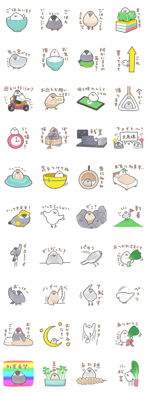 文鳥さん一家の使いやすいスタンプです。家族連絡用にぴったり