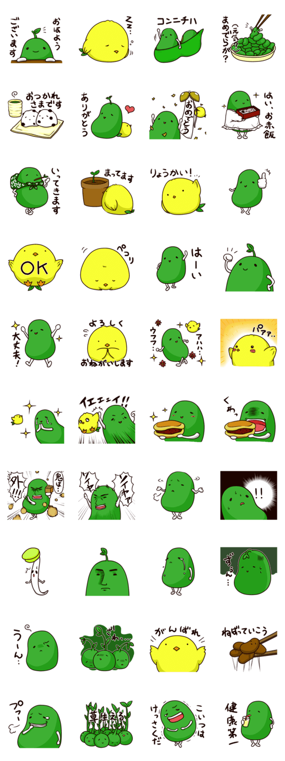 大豆の妖精、ソイ太郎のスタンプです。豆は体にいいよ。