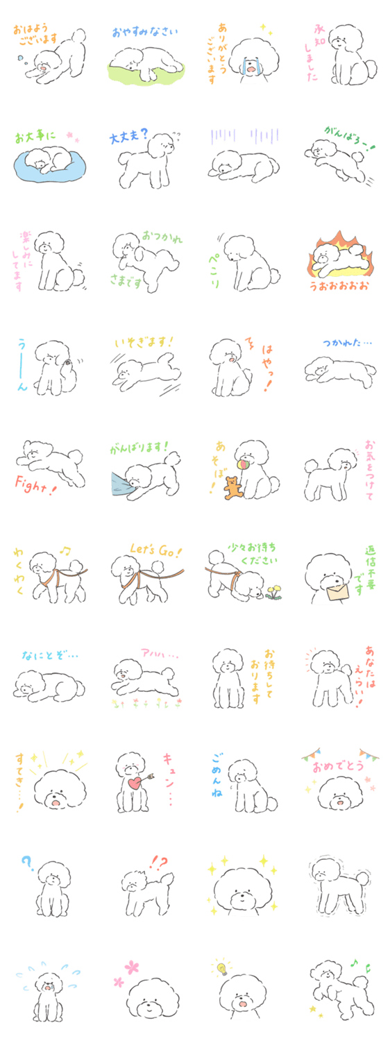 毎日つかいやすいスタンプです。 ゆるいスタンプ好きな方、白プー好きな方、いぬ好きな方、ぜひ。