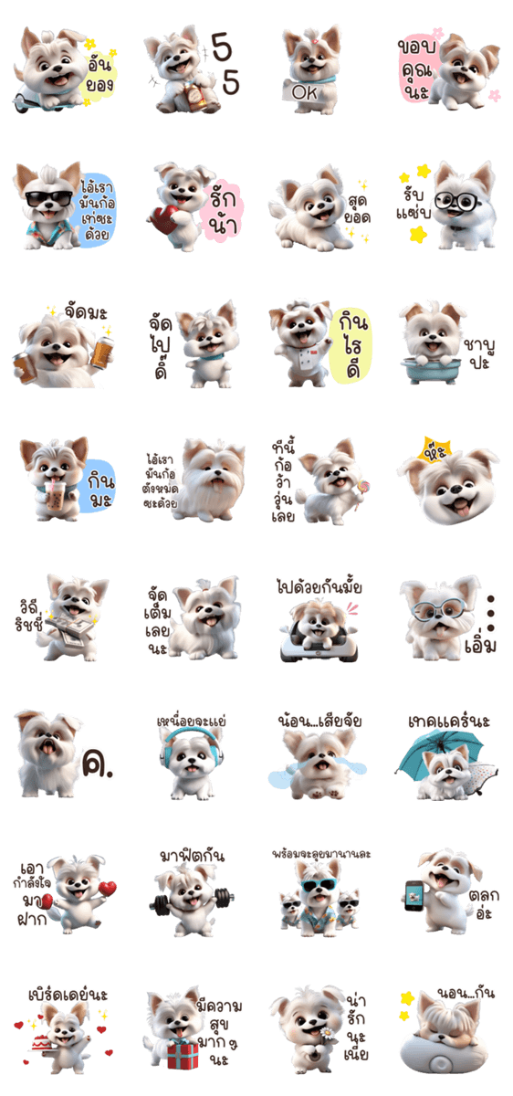 白ネコのあいうえお・・・ってるスタンプ