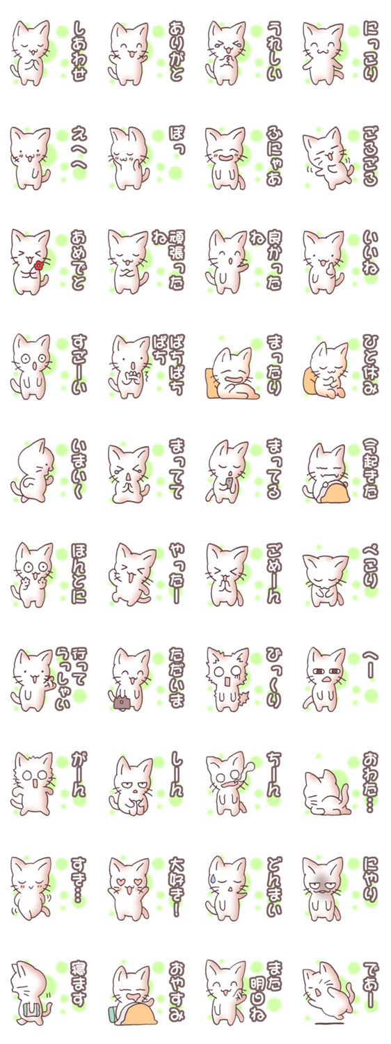 白ネコのあいうえお・・・ってるスタンプ