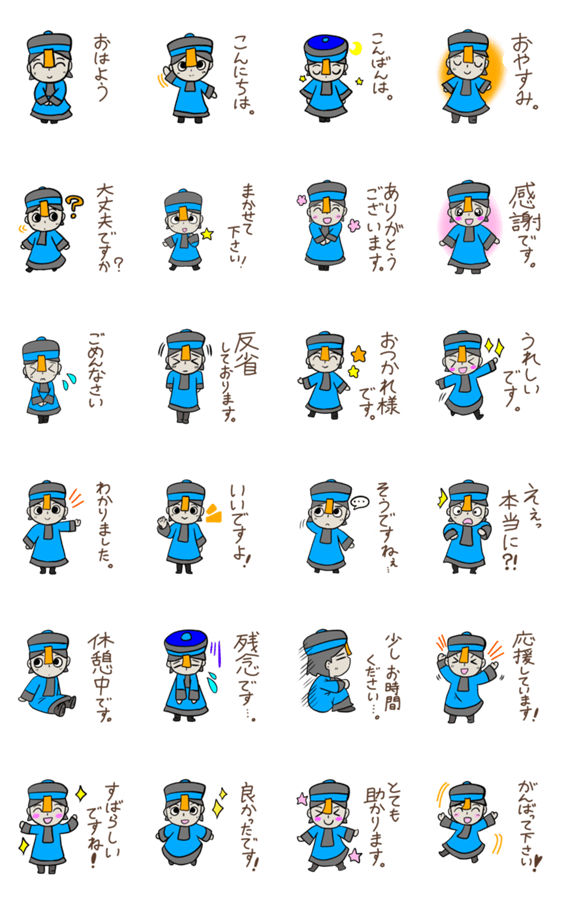 挨拶や今の気持ち・思いを伝える、優しいキョンシーのカンさんのスタンプです。