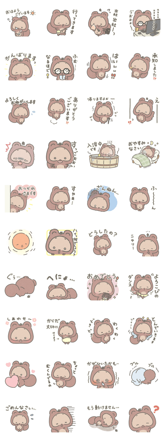 一人前のたぬきになる為に、今日もがんばるぼんじりちゃん。 日常で使えそうなスタンプです。
