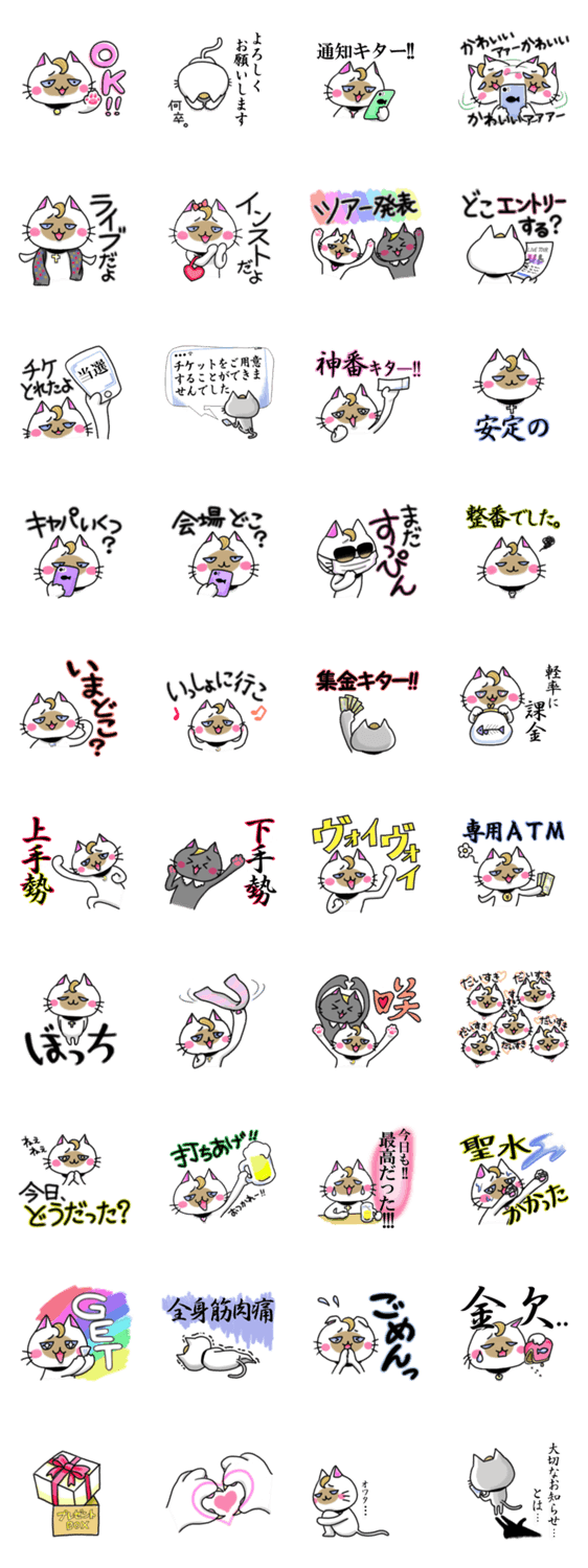 バンドが好きなバンにゃルちゃんの、バンギャスタンプ。好きな麺を甘やかして愛でまくるタイプのバンギャです。