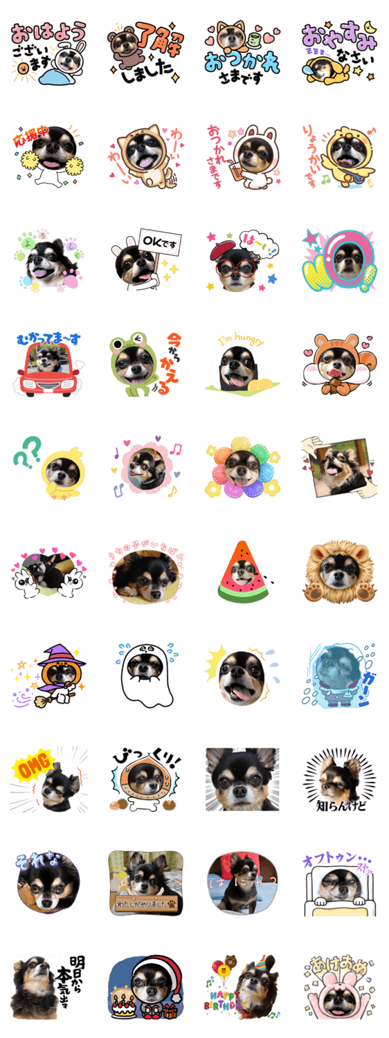 ロングコートチワワのこたちゃんスタンプ第2弾です。
