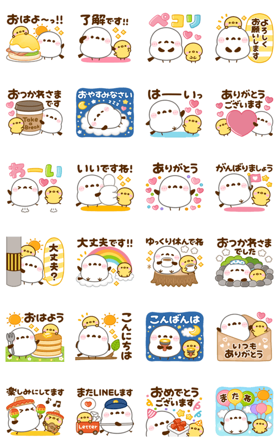 画面いっぱいに飛び出して動く♡毎日使える言葉がそろったシマエナガスタンプです。