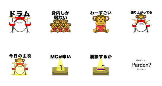 | スタンプ説明 | 駆け出したドラマー風のスタンプです。笑いましょう。 |