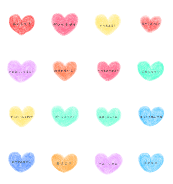 クレヨン風手書きハートを添えて何気ない普段なかなか言えない想いを伝えます。カップルやご夫婦の会話に是非どうぞ。
