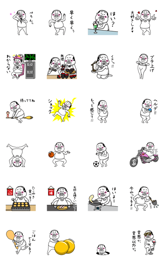 インスタグラムでもお馴染み「タンクトップ伝説」のスタンプ第16弾だよ!たこ焼きはソース派?しょうゆ派?通には塩マヨネーズがおすすめ!