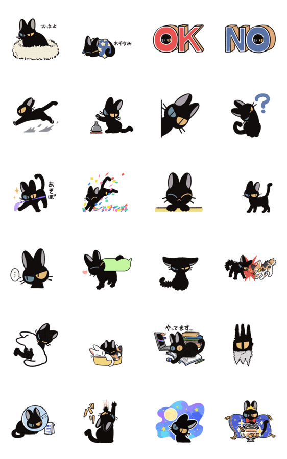 耳が大きくてカギしっぽな黒猫の動くスタンプです。猫は正義。