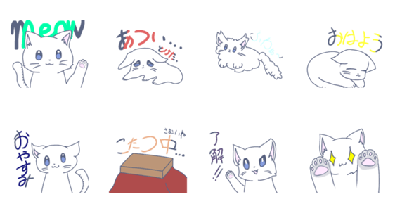 白ネコのあいうえお・・・ってるスタンプ