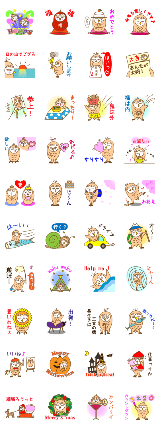 幸せを運ぶふくろうの福ちゃん。今回は、年中使えるイベント編です・