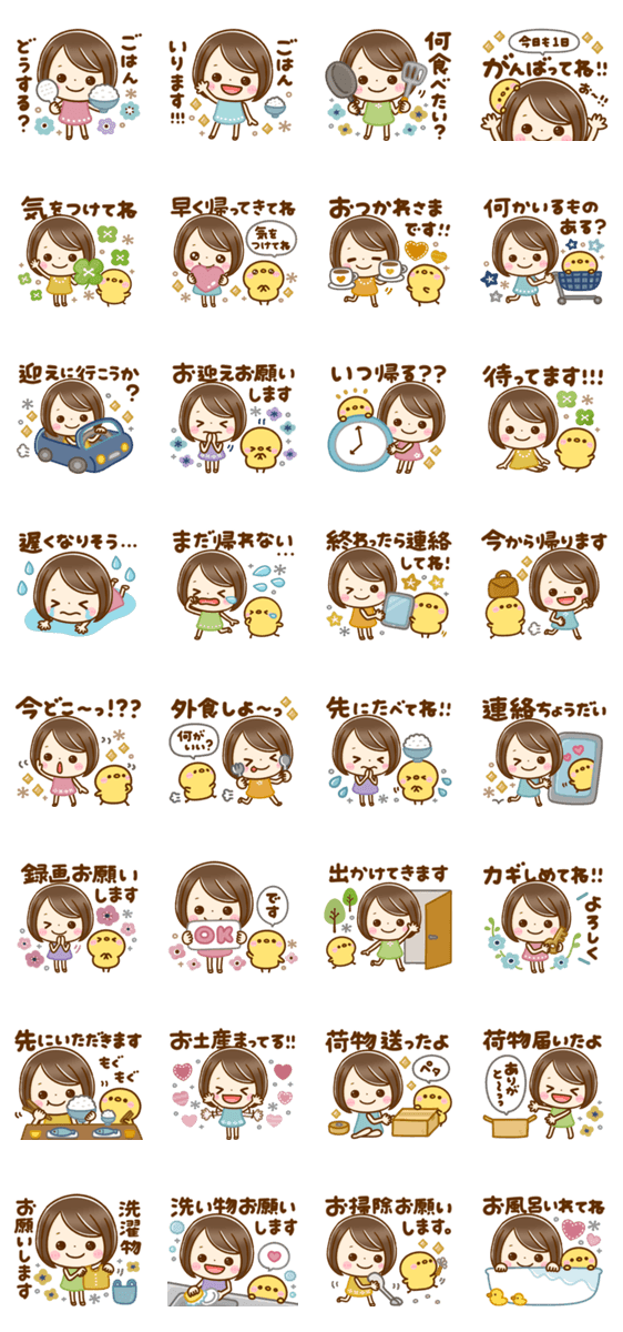 大人可愛い女の子の家族連絡スタンプです。カップル・お友達にも♪