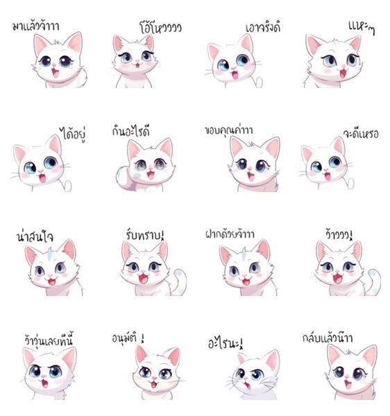 白ネコのあいうえお・・・ってるスタンプ