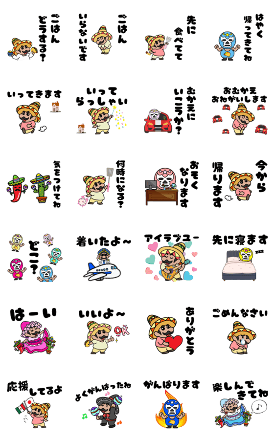 陽気なメキシコのホセおじさんシリーズ、家族の連絡用スタンプ①です。毎日使える言葉が沢山です♪