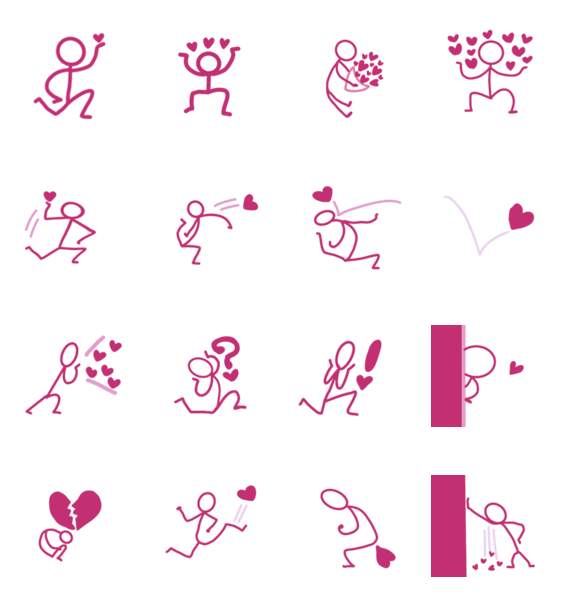 ピンク色の棒人間さんがあなたの代わりに愛を伝えます。右側の相手を意識したスタンプです。