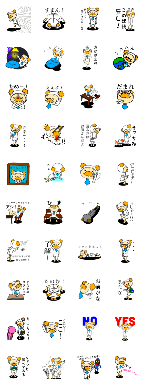 全身タイツのおじいさん「黄ひげ」のちょっと生意気なスタンプです。