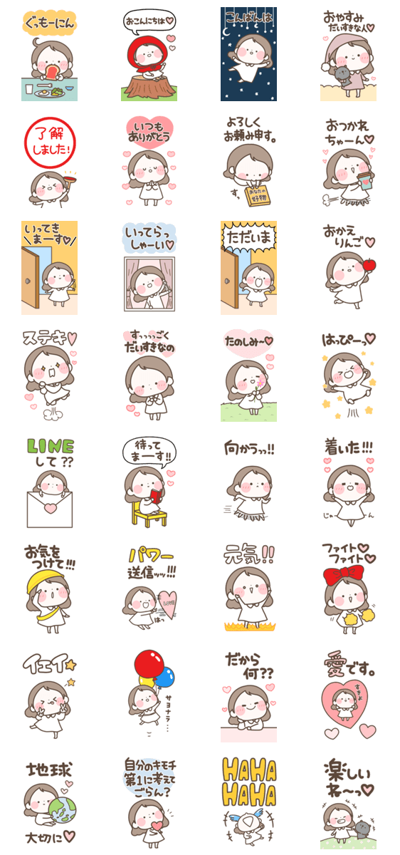 まるいすたんぷの、毎日使いやすいスタンプだけを集めた便利なセット!女の子バージョンだよ! ※このスタンプはトークルームで大きく表示されるBIGスタンプです。