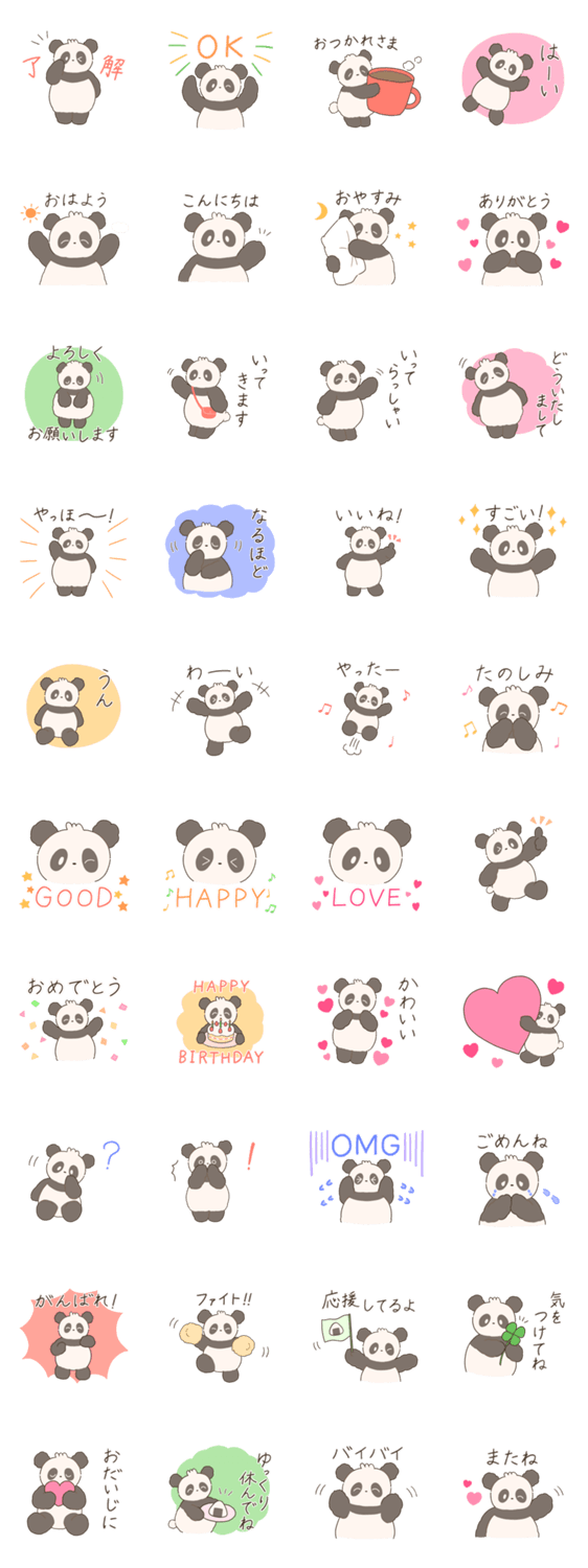 ふわこぱんだはふわこいパンダ。日常使いしやすい言葉がいっぱいのスタンプです。