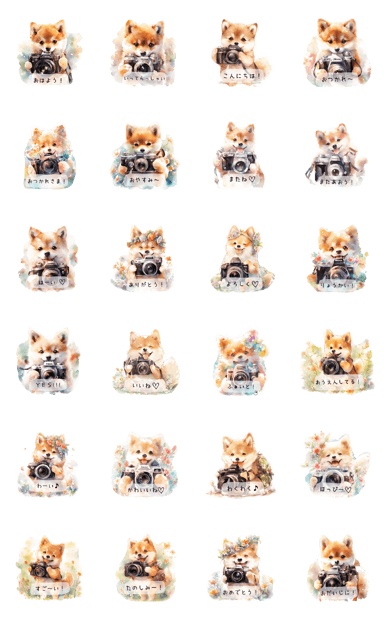 | スタンプ説明 | カメラ大好きな柴犬が写真を撮ってくれるよ♪はい、チーズ! |
