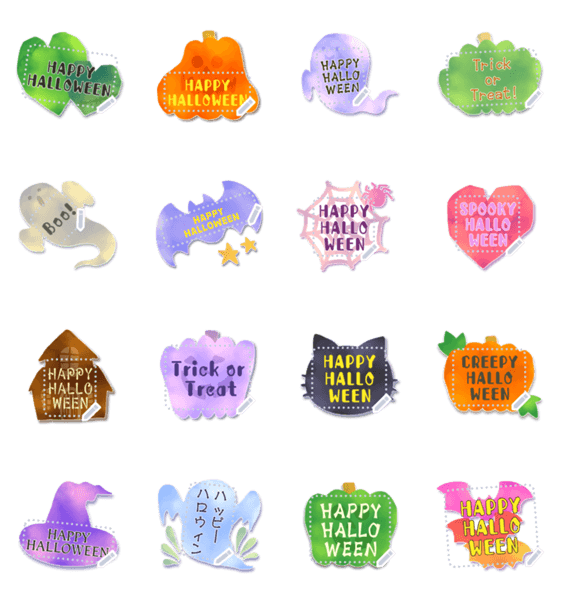 ハロウィンにおすすめ♪怖可愛いカボチャやオバケ・コウモリ・つぎはぎハート・黒猫・魔女帽子・お屋敷など好きな文章が書き込める秋の水彩風グラデカラーのフレームです★ 現在この商品は一部のスマートフォン版LINE 10.3.0以上のトークルームでのみ使用できます。動作環境の最新情報はヘルプをご確認ください。