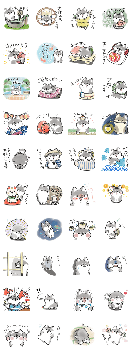 和な雰囲気の黒い柴犬のスタンプです。日常の挨拶とリアクションに