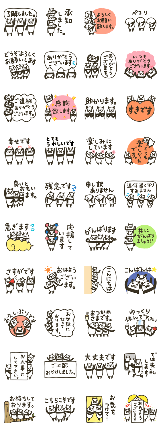 3連パンダによる敬語のスタンプ。