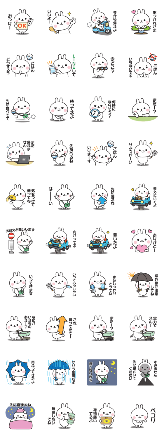 うさぎさんの家族の連絡用に使える言葉を集めたとっても使いやすいスタンプの第四弾です♪