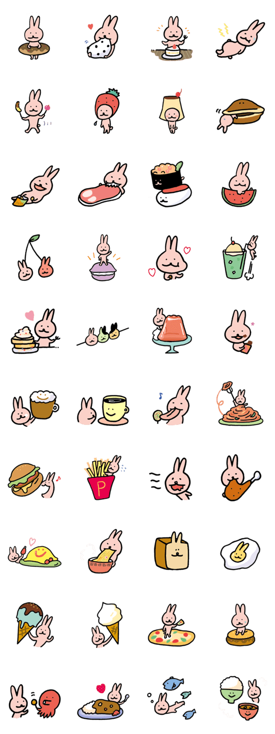 たくさんのおいしいものと、うさぎのスタンプです。