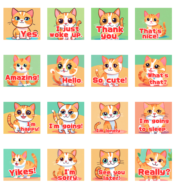 猫好きにぴったりの、愛らしい猫モチーフのスタンプセット!日常会話にふんわりとした猫の魅力を加えましょう。