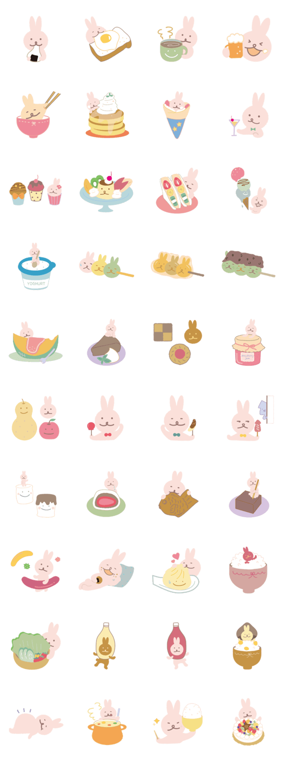 たくさんのおいしいものとうさぎのスタンプ、大好評の第3弾。お腹がすいた時など色んなシーンにお使いいただけます。