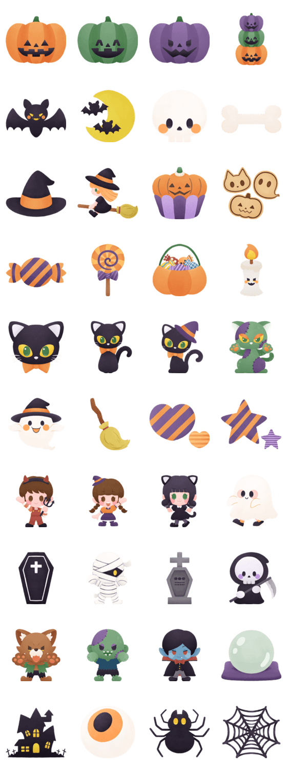 ハロウィンに毎年使えるかわ怖な文字なしスタンプです♪【秋/オータム/ハロウィーン/カボチャ/魔女/黒猫/おばけ/仮装/吸血鬼/ゾンビ/モンスター/狼/かわいい/10月/便利】