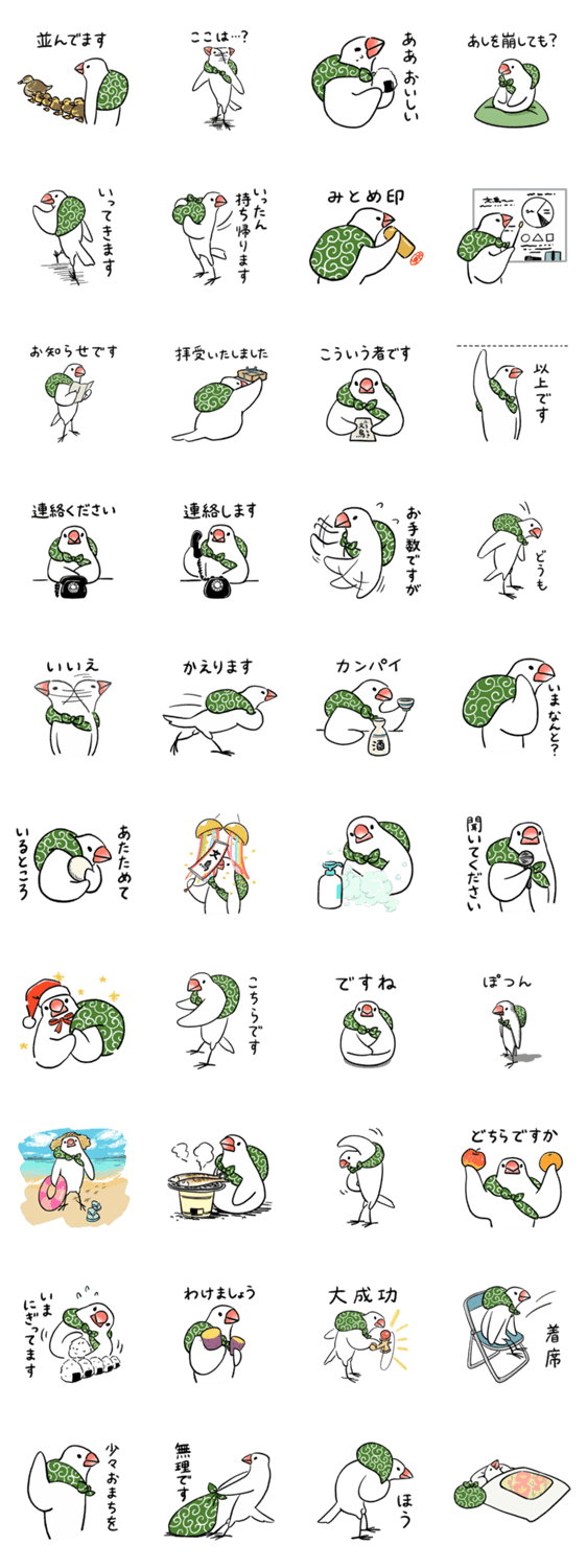 さすらいの旅文鳥「ふろしき文鳥」のスタンプ第四弾です。日常のコミュニケーションで使えるさまざまなシチュエーションをカバーしています。
