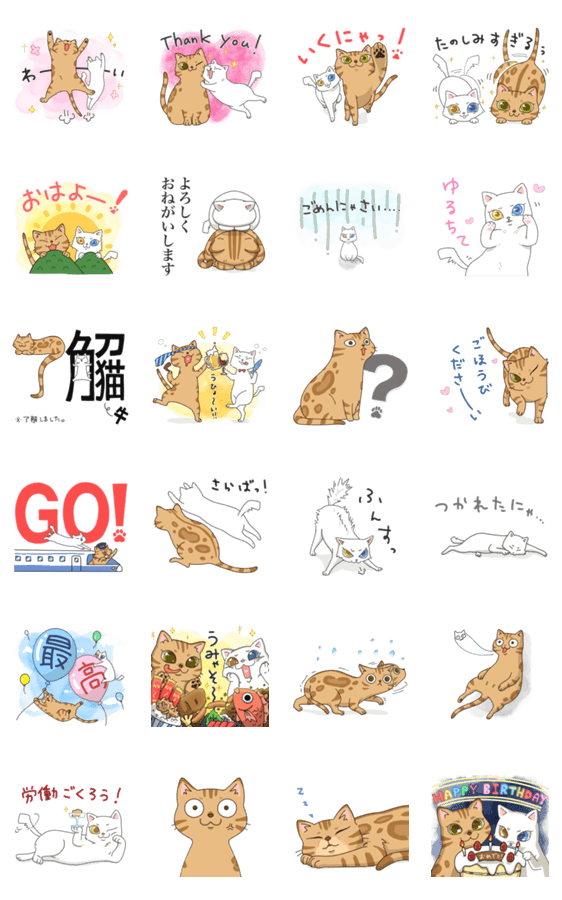 ベンガル猫のロキと白猫のリン2 -LINEスタンプマニア