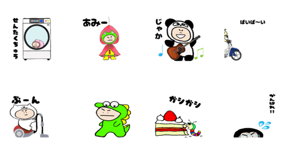 スタンプ説明 ぷちこがいろんな着ぐるみで動きます