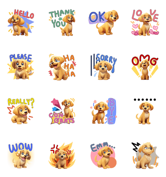 | スタンプ説明 | Introducing Buddy, the epitome of Golden Retriever charm! Share his joy and playful with your friends and family through these adorable stickers. Let's download |