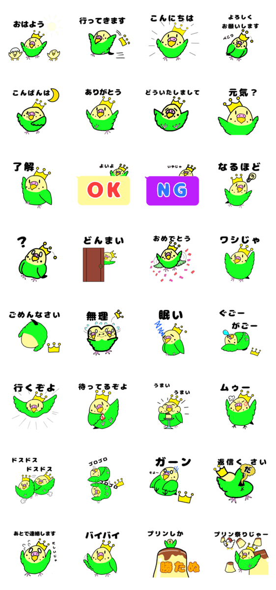 とある小さな国のインコの大王様です。ぽっちゃり体型で3度の食事よりプリンが大好き、頭の王冠がトレードマークです。