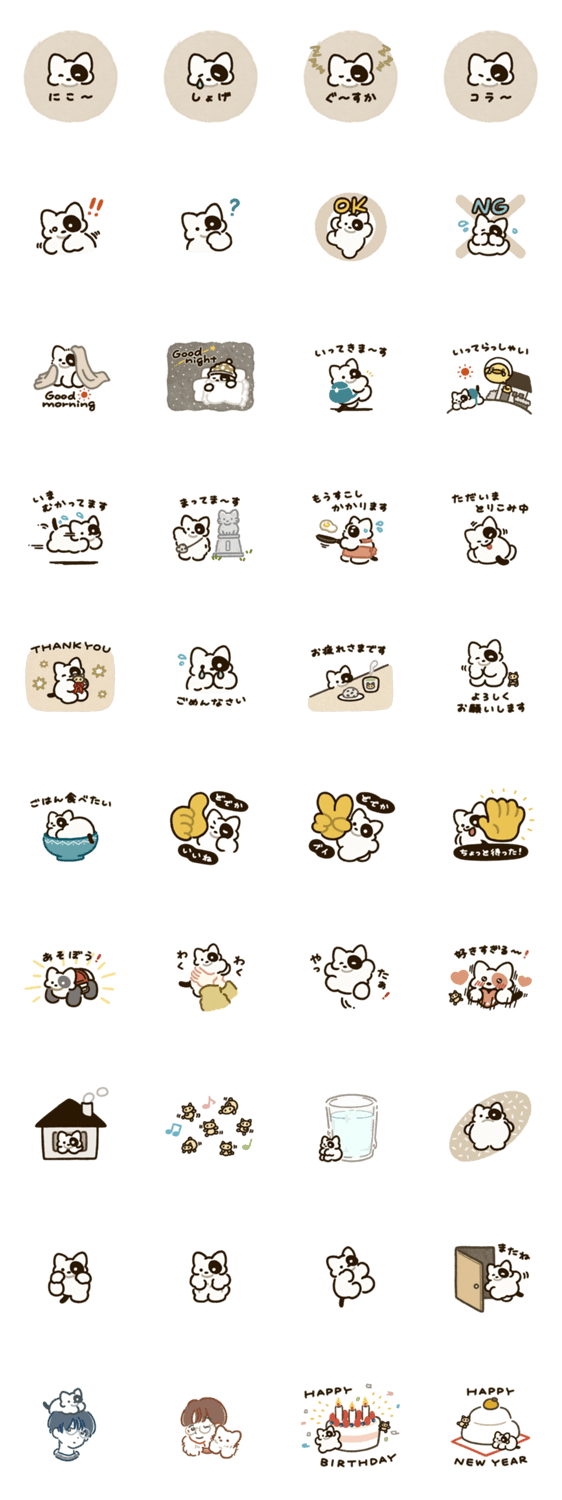 スタンプ説明 猫のような、豆大福のような、不思議ないきもの。