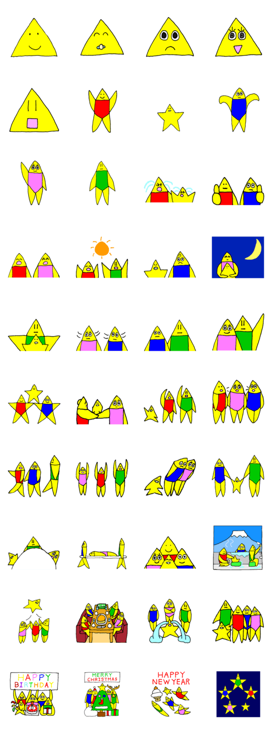 星の子ラスターのスタンプ第6弾です。 今回は星の子たちの色んな組み合わせのスタンプになっています。